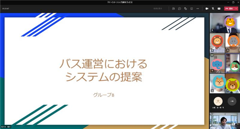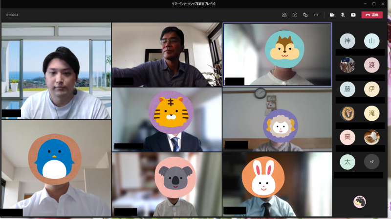 今日はサマーインターンシップの最終日ということで、顧客折衝企画で作り上げた提案を全社員向けにプレゼンしてもらいました。