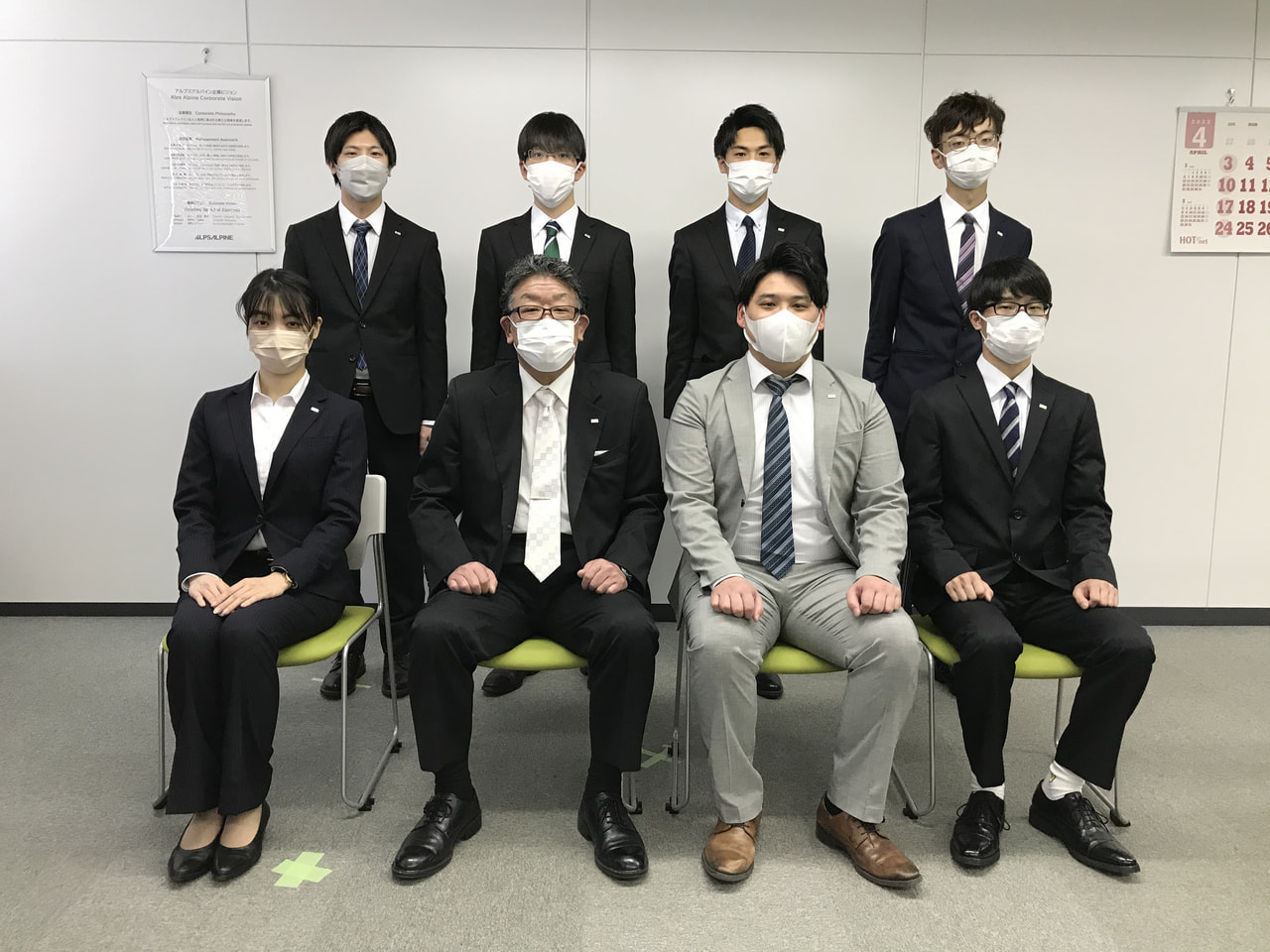 リモートでの入社式とマスクでの記念撮影が今回で3回目となりましたが、来年はマスクなしで入社式の撮影を行いたいですね。