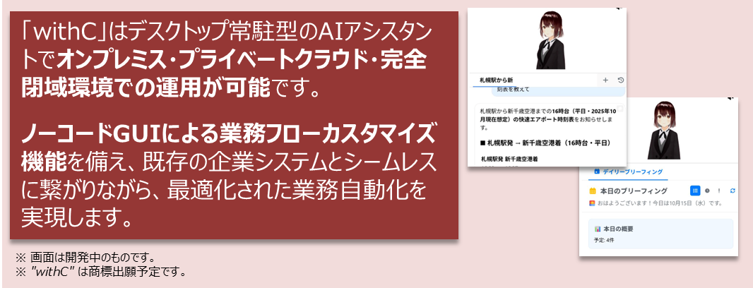シーズ・ラボのブースでは、自社PCで安心してAlを活用でき、即導入可能な業務支援AIアシスタント「withC」を展示および紹介しています。