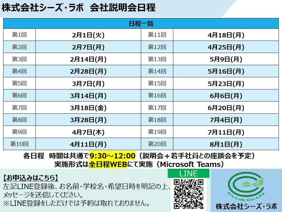 【株式会社シーズ・ラボ】キャリタス就活2023 説明会予約ページはこちら