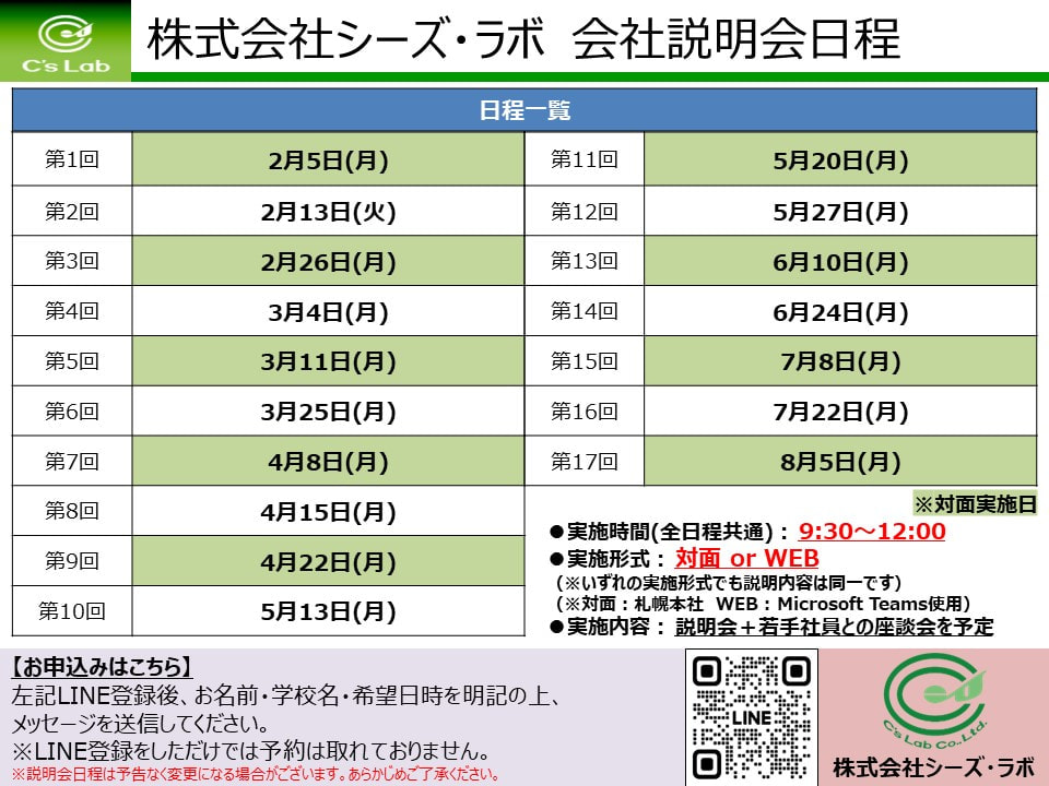 本日は2025年卒向け会社説明会の日程についてお知らせになります。